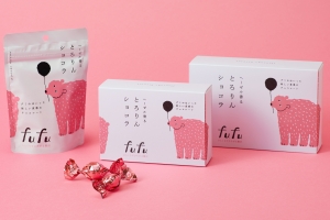 新ブランドのひとつ『fufu』は柔らかいグミに幾層ものヘーゼルチョコを重ねた贅沢なショコラ。この商品は、もともと社員からおいしいと支持されていたヘーゼルチョコから作られている。手作りのため、大量生産できないという事情で埋もれていたが、山田さんと菓子職人チームは、「手作りを守りながら、このおいしさを届けられないか」と情熱をもって開発に挑んだ。