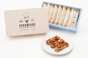 こちらは新商品のアーモンドバー『TEMAHIMAN』です。お菓子職人が手間暇かけて、自分至上最高のお菓子を作る≠ニいうストーリーがあり、パッケージには開発した菓子職人、その人が描かれています。私はメーカーと一体となった開発チームを作ることで、メンバー内に自然と「もっと良いものを」と願う雰囲気を醸成し、他にはない新しいお菓子を生み出したいと考えています。