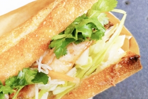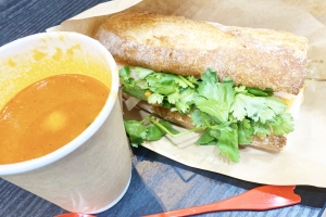 新潟駅前に、ベトナム発祥のサンドイッチ『バインミー』がやってきた!店長イチオシの具材は『ガーリックジンジャーチキン』。おいしさの秘密はパン。工房を何軒もまわって探しあてた淡白で旨みのあるフランスパンに、ジンジャーチキン、レバーペースト、新潟産パクチー、人参や大根など根菜の酢漬けを挟んだエキゾチックなお味。一度食べるとやみつきだ。