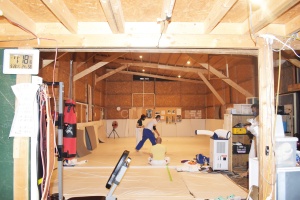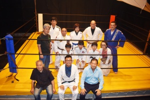 当日は同社運営の社会貢献活動、柔道&柔術「愉柔会」が稽古中。そこにも半生をかけた自社製リングが輝いていた。