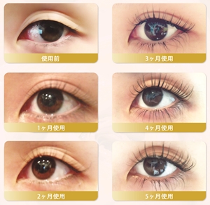 まつ毛そのものが強くなるので、伸びるだけでなく、抜けにくくなり、一本一本が太く変化。「私は長年エステの業界にいましたが、この商品は特に自信を持っています。私の片目は『ジュリーロングアイラッシュ』、片目は類似製品を試す実験用にしていますが、こんなに違います」。と目を閉じると、離れた場所からも左右のまつげの豊かさに明らかな差がある。塗り続けると強くなるため、継続すると使用回数を減らすこともできる。