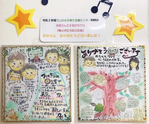 子育て支援センターを利用する保護者の皆さまからの温かい寄せ書きメッセージを頂いたり、お人形の着物を手作りで製作してプレゼントしてくれたりと、利用者からの愛に支えられて、かしのき子育て支援センターは運営している。