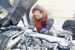 佐藤さんの愛車には、どんな状況にも対応するための機材が揃っている。整備士の経験を活かし、オイル交換にとどまらず、運転手さんも気づかない車体の不調があれば、積極的に修理・整備をしてくれるとのこと。あくまでも安全な自動車稼働に貢献するプロの姿勢と技術が素晴らしい。多くの企業から、信頼を得ている理由がわかります。