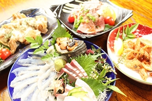 国東町で地産地消の料理を提供する『食彩元屋』。地元産の鯛を使った大分の郷土料理『琉球』、安岐農場のブランド豚である桜王豚を使ったロースカツ、リピーターの多い自慢の唐揚げなど、地域の魅力が詰まった、ここでしか食べる事のできない絶品料理を風情のある店内で、リーズナブルに楽しむことができる。