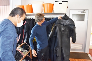 更衣室とシャワーも完備!ダイビングスーツは自分の身体のサイズに合わせたものをレンタル。キャリアのあるインストラクターが最高の海に連れていってくれます。慣れたお客さまの中には、水中カメラ撮影を楽しむ方も。未知の世界にワクワクしますね!