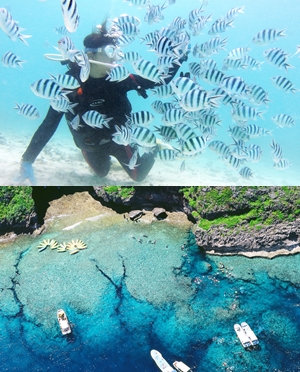 世界一の人気を誇る沖縄のダイビング&シュノーケリングスポット『青の洞窟』に5分で案内できる沖縄県国頭郡の『沖縄ダイビングセンター』。