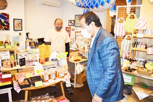 『Koite』で一番人気の商品は、加茂市でマカロニの製造機械が日本で初めて導入されたことにちなんで開発された『マカロニチップス』。永山さんのおススメ商品は、自らも肌の難病を克服したという食べる米ぬかと、酵素が生きているお味噌。他地域と物産品を交換するなどして、交流を呼びかけている。