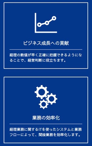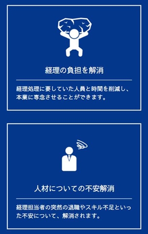 新井 自分たちで賄うと限られた時間で適切な会計処理が難しいケースがあります。事務員の教育も大変ですよね。多くの中小企業の経理処理方法は大手企業の経理に比べると、スキルが及ばない部分が見受けられ、融資など資金調達を受けにくいデメリットも。私たちは数字や処理が好きで慣れており、専門性の高い会計処理をスピーディーに提供しますのでご安心ください。