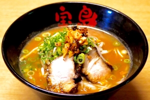 田畑さんはラーメンが大好き。作りはじめて30年目。車一台、鍋を積んで走るチャルメラ号(移動販売)から始め、実店舗を持って20年、変わらぬおいしさを守る。特製『鹿児島醤油とんこつラーメン』は1杯700円(税込)の安心価格。麺は手打ち、スープはげんこつベースのダシにこだわり、そこに鶏ガラとキャベツ・玉ねぎ、深ネギなど野菜をたっぷり入れてスープが半分になるまで煮込む。トンコツなのに口当たりがすっきりまろやか。