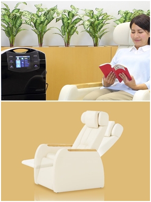 渕脇 現在、3種類の治療器を取り扱っており、いずれの治療器も東洋医学に基づく根本治療が中心となります。1つめは低周波・電位・温熱組合せの家庭用医療機器「レガシス プラス」で、1台で5種類の治療(電位治療、温熱治療、局所治療、神経刺激治療、筋刺激治療)が可能な最上位機種です。2つめの「リブマックス1/f」は2種類の治療(電位治療、温熱治療)を行います。3つめが電位治療のみを行う「キュービック1/f」です。また、「電位治療専用リクライニングチェア ライブサウンド(1/fゆらぎ)」も開発しております。イスの座面部に置いたマットから身体全体に電位がかかります。刺激はほとんどなく、本を読みながら、テレビを見ながらなど「ながら」で使っていただけます。当社の機器類は高額なものですから、本当に治療できていることを体感していただくため、催事会場で1回20分程度無料で体験する販売方法を採用しているのです。