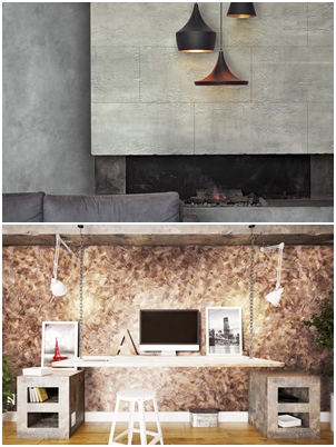 岡本 こちらが、多彩な表情を生み出すイタリア生まれの最高品質塗料『VALPAINT(バルペイント)』で、サビ調、大理石風など多様な質感を表現します。こちらはモルタルで、デザインコンクリートや石畳床などを造形します。さらに、私自身、お客さまが選択できるデザイン幅を広げるために、常に新しい技術を学んでいます。