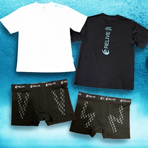 「効果を体感した方も一様に信じられないと驚かれます。私たちが開発したパワードシャツ®『リライブシャツ』は、テーピングの力を応用した特許技術。生地に練り込まれた数種類の鉱石が、経絡を刺激して身体に電気を流し、持っている身体能力を利用するカタチで、パワーを発揮させます。これは太極拳や少林寺拳法などに通じる手法です」。