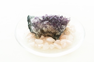 丸みを帯びたハート形のローズクォーツや自然のカタチを留めたアメジスト。それらはcaelum et terram(ラテン語で「天と地」)をつなぎ、愛を伝えてくれる。これらの石の写真撮影も、天がYukaさんに、偶然近くにいた見知らぬカメラマンに対し「この人にお願いを」という啓示をもらってとのこと。