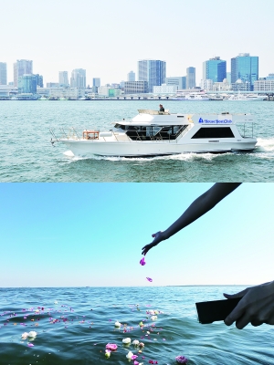 赤羽 当社が中心的事業としている海洋散骨は、ご遺族がクルーザーを貸し切って行う『チャーター散骨プラン』と複数組が合同で散骨セレモニーを行う『合同散骨プラン』、船に乗らない『代行散骨プラン』を55,000円(税込)から提供しています。散骨場所は北海道や沖縄など全国40カ所以上で、ご希望に沿ったセレモニー形式で行うことができます。また、当社は2014年より『日本海洋散骨協会』という業界団体に加盟しており、陸地から一海里以上離れるなどガイドラインに沿った散骨を行います。