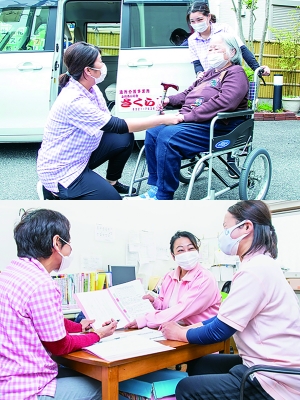 「ここは平成18年、母と父が創業した通所介護や訪問介護、福祉用貸与事業所です。スタッフ50名の小さな企業ですが、地域密着型ならではの手厚いサービスを展開。お互いに顔の見えるアットホームな空間でありたいです」。