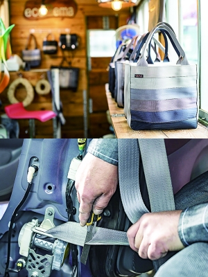 自動車の廃材をバッグに!