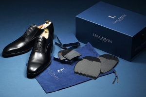 2022年は、自社ブランドの長持ちする靴『LUCA UMEDA(ルカ・ウメダ)』を発表。足サイズを測定し、ひとり一人にフィットする紳士靴を提供する。1年間のシューケアに、3回分のかかとゴム交換をセット。さらに爽やかな香りのヒノキ・シューキーパーも付いてきます。クールなデザインですね。