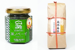 7fの茶畑を受け継ぐ黒坂浩教さんは、加工製品の開発にも積極的に挑戦している。『美作番茶』と地元の黒大豆・作州黒を使った『茶ノベーゼ』は、パスタに混ぜるだけ、野菜や魚にかけるだけでおいしくなる茶の風味を生かしたパスタソースだ。