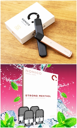 伊澤 これは当社がオリジナルで販売している電子タバコ『NONICO(ノニコ)』です。デバイスはヨーロッパを中心に海外で約300万個の販売実績を持つ製品の販売独占権を取得し、フレーバーは日本人向けに日本の工場で開発しました。ケースにダブルネームが入っているのはそういう理由です。