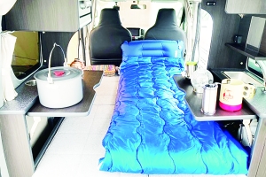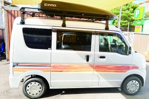 江戸川区・葛西駅近くにある『KCレンタカー』はキャンピングカー・キャンプ用品がレンタルできるショップ。キャンピングカーとしては珍しい軽自動車の改良品『エブリィワゴン』を改良した軽キャンパーを揃える。軽自動車とはいえ、後部座先はフラット可能で大人2名が足を伸ばしてゆったり就寝可能。シンク、机、照明、AC電源、天井収納もあり便利で、ペット可の車も取り揃えている。