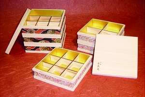 林さんたちが作るのは、贈答用木箱に始まり、おせち用木箱、日本酒用木箱など様々。すべて職人の手仕事加工だからこそ、小ロットで納品が可能。あらゆるサイズ・あらゆる形状・あらゆる材質のオーダー木箱で、印刷から焼印までワンストップで小回りよく対応してくれる。