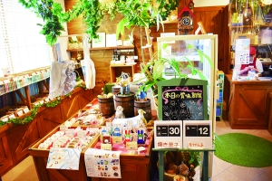店内にはうさぎの雑貨や焼き菓子が並ぶ。ここにあるクッキーやパウンドケーキなどは、すべて安心できる材料で愛情を込めて手作りされている。