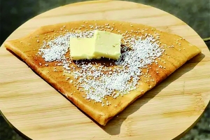 南平さんは焼き方にこだわり、2年間も研究に没頭。生地を薄く伸ばし、濃厚なバターをたっぷりと塗る手際の良さに見ほれる。
