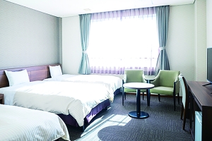 健康になれる宿として、最近話題のヘルスツーリズムを打ち出す海ひかりさん。窓から見える景色がすばらしくて、それだけでも心が癒されるね。外を歩いてもよし、館内で健康プログラムを体験するもよし、いろんな楽しみ方が選択できるので社員旅行にぴったりですね。