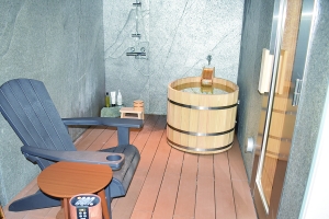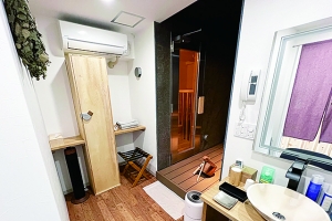 お店に入るとサウナとは思えない美容室のようなお洒落空間。まずは丁寧な利用説明を聞いて個室へ入ると、穏やかな送風機の音と檜水風呂のライトアップに癒される。完全防音で音響効果も高く、Bluetoothを備えBGMも自由。サウナストーブでのロウリュは、アロマとラドルを選択可能。サウナに入れば優しい木の香りにも包まれながらランタンの揺らめきを眺めたり、横になるのも自由。アメニティ完備で、手ぶらで来店できるのも嬉しい。フィジカルはもちろんメンタルまで整い、「心も身体も前向きになる体験をしてほしい」と梅村氏。理想の個室サウナで、グレートリセット体験をぜひ。