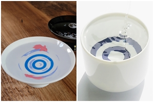 酒祭りなどで使われるお猪口。最近は蛇の目タイプの陶器を集めるファンも急増。各酒メーカーもオリジナルお猪口の販売に力を入れる。同社はニーズに応え、多様な製品を企画。他にも飲食店向けに日本酒の1升サーバーとなる『カメサーバー』、贈答品であるハートの文様で絵付けされた『ハート利き猪口』などがあり、オンラインショップを眺めるだけでも飽きない。