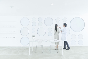 同店の検査方法は圧倒的。4種の最先端機器で1時間以上をかけて視力を測定。片目のみならず両目で捉えた像を矯正する『両眼視機能検査』など、他にはない技術が並ぶ。視力測定の精度は従来の25倍。黒目の位置、角度もあわせて調整した結果、身体への負担が減り疲れにくくなる。