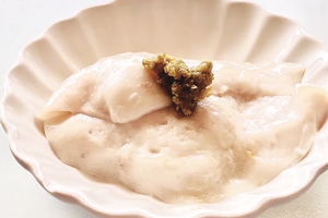 「塩が決め手。あとはデンプンを少し入れただけのシンプルな作り方です。わさび醤油やポン酢、バター焼きなどもおいしいですよ」。