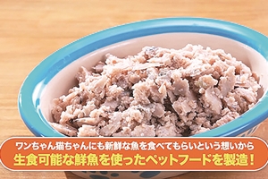 新商品は犬猫用のペットフード。天然素材のコハダをフードプロセッサーにかけて加熱冷凍したシンプルなもの。添加物・着色料・保存料は不使用だ。量産はできないが、一つひとつが誠実に作られている。