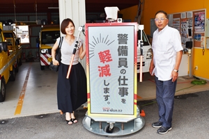 「この業界は低賃金と危険な業務で人材不足。そこで、警備員の仕事を軽減させるため、ロボットに活躍してもらおうと開発しました」と前川会長。