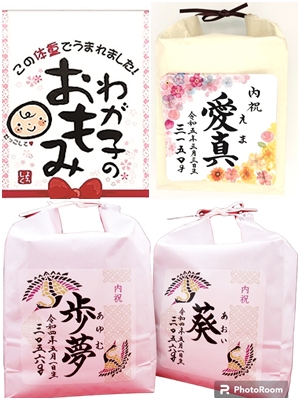 石井 はい。当農場では『特別栽培米あきたこまち』と『サキホコレ』を出産内祝いとして贈る誕生米『わが子のおもみ』という商品も取り扱っています。生まれた赤ちゃんと同じ重さのお米を入れ、お子様のお名前、お誕生日、体重を毛筆にて手書きし、化粧箱に入れます。