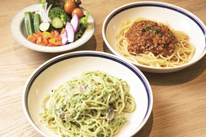 秦 ここは事業再構築補助金を利用してオープンさせました。昼間はレストラン。新鮮野菜を使った人気のサラダビュッフェの他、ピザ、パスタのメニューをご用意しています。夕方からは犬同伴でお酒が飲めるドッグバーで、ゆったりくつろいでください。