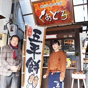 高山市の国分寺通り沿いに昨年10月8日オープンの五平餅屋『あぶらえのお店くあどろ』。「あぶらえ」とは方言で「えごま」のこと。同店は、郷土食材でもある飛騨産のえごまの普及と、後世に伝えていきたいとの思いからスタート。自慢の五平餅は、地元の方に愛されるとともに外国人観光客からも人気を集めている。白米、縄文米、かぼちゃの3種類のお餅と、えごま、くるみの2種類タレから選べ、モチモチ食感のお餅にこんがり焼けたたれが絡み合い絶妙の味わい。また香ばしい匂いが食欲をそそる。今年から五平餅づくり体験もスタート。飛騨高山観光の際は是非立ち寄ってみたいスポットです。