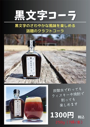 別名「和ハーブ」とも呼ばれ、その免疫作用や利尿作用が話題で、村では以前から、クロモジの枝を水に入れ、その香りと色を楽しみながら飲む村民もいる。田野畑村にはクロモジの木が多く分布しており、また今年度は試験的に道の駅周辺へ150本ほどクロモジの苗木が植樹されたその地から「黒文字コーラ」が生まれ、『道の駅たのはた 思惟の風』にて絶賛発売中だ。