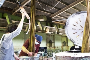 澤染工は国際的なアパレルブランドからの指名が入るほどの実力を有する。とりわけ麻に強く、誤差のない色合わせは国際的に評価が高い。