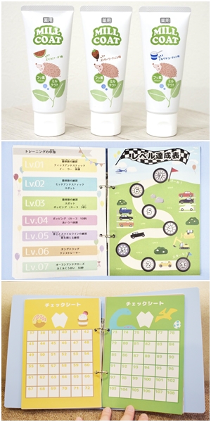 斉藤 当院の特徴のひとつは『トレーニングドリル』と呼ばれるものです。実は歯並びが悪くなる原因は、姿勢、喋り方、食べ方など様々。それらをドリル形式でチェックすることで、発達が健全なものになり、歯並びが大きく改善することもあります。ドリル形式は、親御さんとの共有という意味でも良いツールです。また、グループ医院で監修した身体に優しい天然成分で構成されている歯磨き粉『ミルコート』も他にない予防アイテムです。身体にやさしい素材で、子どもさんだけでなく健康な暮らしに敏感な大人の方にもお勧めです。
