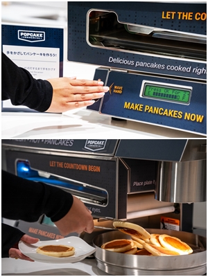 D・Gagliardi(以下D・G) 当社のパンケーキマシン『POPCAKE®』は、昨年の夏に日本へ進出。以来、ホテルのビュッフェや空港のラウンジなどで好評です。外食店のレンタルやメンテナンス料は無料。お申込みいただき、パンケーキミックスを購入すればすぐに始められます。