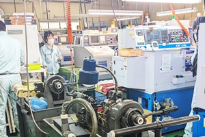 河村 切削加工の分野でも、テフロン加工は技術が難しく、他社では倦厭される素材です。当社は旋盤にコンピューターを組み込むことで精度の高い加工ができる『NC旋盤』を10機ほど有し、数ミリ程度の製品も複雑な規格図面に則って、1個から10万個までの大量生産に対応できます。