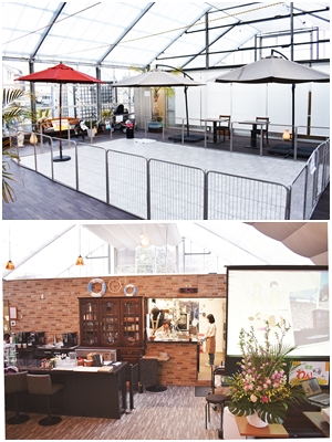 もともと苗を育てる温室だったという『喫茶 わん!リトルガーデン』。リノベーションを考案したところ、なんと予想の6倍もの予算が必要に。それでも「キチンとしたものを造らなければ」と竹添さんは考えたそうだ。営業時間は11時〜21時まで。毎週水曜日定休。ガラス温室なので、雨の日もたっぷり遊べる。わんちゃん用の食事メニューもあるが、自由に持ち込み可能だ。