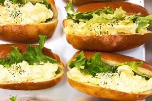 愛知県稲沢市にある街のパン屋さん『パン工房ベルク』。エビアボカドコッペに照り焼きチキンコッペ、玉子サラダが入ったたまごコッペなどコッペパンがずらりと並ぶ。その傍らには、菓子パン、総菜パン、バケット、クロワッサンに食パンとメニューが豊富。その種類は約50種類。価格は良心的。みんな大好きな街のパン屋さんだ。