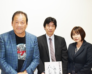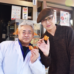 大流行の『バター最中』の名店を訪ねて、福島県相馬市にある『四季の菓子 松林堂』を訪ねた。明治時代創業の老舗で社長の佐藤氏は5代目を守る。スイーツにはモノ申したいイザムもひと口食べて「これはおいしい!」と続けざまに頬張る。 |