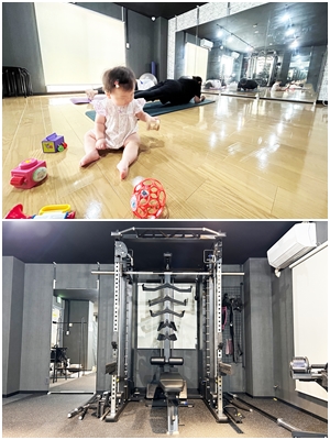 ママとして自分が使いたいジムを実現させた繻エさん。ウォーターサーバーには冷水だけでなく、熱湯や常温水も出るなどミルクをつくるママへの配慮がある。また、ベビーカーは、ジムの入り口まで乗り入れ可能で、ベビーサークルの貸し出しまで用意。子育て中の繻エさんだからこその視点で、ママへの配慮が行き届いたジムだ。