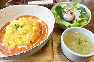 テーブルにはうずら卵をなんと15〜6個も使った『うずらの贅沢オムライス』が湯気をあげ、訪れる人を喜ばせる。株式会社モトキが独自で開発した業界初、うずら半熟卵の加工品『うずら円熟卵プチとろ』(3種類)も人気だ。大手工場も真似できなかった唯一無二の開発である。