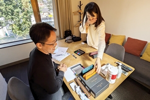 吉岡 品のあるカラーもいいですね。私は深みのあるボルドー色が好き。ネロ、オルテンシア、ナポリの4色展開ですね。念願のブランドリリースですが、今後はどのような展開を計画しますか。