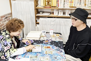 小倉駅前で人気を誇る占いサロン『虹色のシャワー』のカリスマ占い師藤野観如先生。本誌3度目の登場となる今回はIZAM氏と伺った。相変わらずの人気ぶりでメディアでも多数取り上げられ、県内外から多くの相談者が訪れる。厳しい修行を経て得たパワーとタロット、手相、気学などの占いスキルを合わせ、鑑定し相談者に寄り添いながらアドバイスをおこない人生を導いてくれる。また、オリジナルパワーストーンのアクセサリーもオンラインショップで話題になっているので興味のある方はHPを。鑑定は13時〜19時、料金は20分3700円・30分5500円。ご予約はラインからも可能。