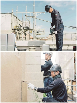 𣘺 私たちはまず、建物の寿命を延ばすために雨漏りしない建物を作ることができます。そして、雨漏りした場合は、防水のさまざまな考え方を組み合わせながら検証。外壁のひび割れ、屋根の亀裂、窓枠と壁の接合部など、問題のある箇所にあわせた修繕を行います。